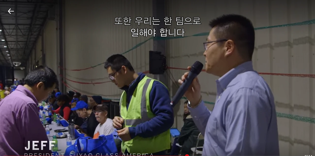 중국인 관리자들은 가족 없이 미국에 와 2년간 추가 수당 없이 근무하고 주말에도 일하며 점심식사는 빵 하나로 때우며 열심히 일한다. 미국인 근로자들의 대부분이 자동차 유리 제작 경험이 없어 미국인 생산 관리자들에게 일일이 가르친다. 그들은 언어장벽과 문화 차이로 인해 현장 근로자들의 의견을 빨리 취합하기가 어렵고 중국 공장에서 보다 훨씬 심리적 압박감이 크다고 말한다. 미국인 생산관리자는 주말에도 같이 일하며 모든 것을 가르쳐 주고 도와주는 중국인 간부에게 감사하며 서로 집으로 초대하여 놀이와 식사를 같이 하며 유대의 폭을 넓힌다.