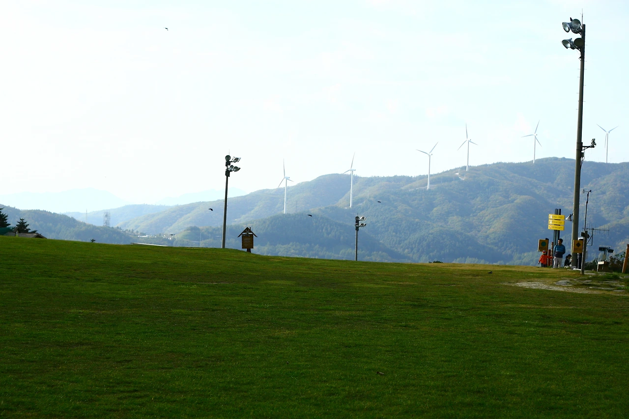산 정상부가 평탄한 고위평탄면에는 양떼목장, 풍력발전소가 설치되어 있다.