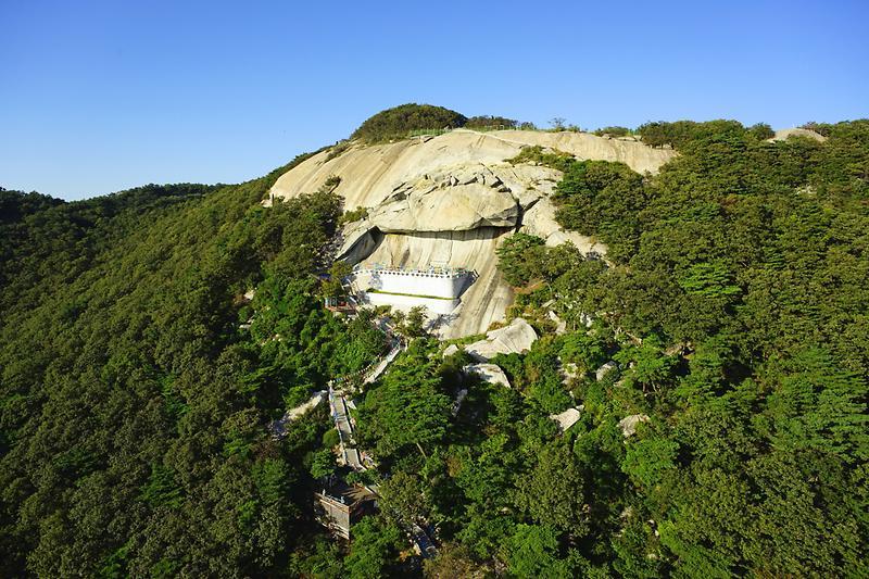 강화도 보문사의 눈썹바위. 화강암 돔의 판상절리가 보인다.(출처:강화군청 홈페이지)
