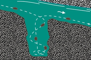 위에서 언급한 아스팔트의 '포트홀'은 지리학에서 먼저 사용했던 말이다. 'pot'은 항아리, 'hole'은 구멍이므로, 포트홀은 '항아리모양'의 지형을 이른다. 암석으로 된 하천 바닥에는 절리가 나타나는데, 그 틈속에 모래나 자갈이 빠르게 물과 함께 흘러가면 소용돌이를 치게 된다. 이 때 침투한 모래나 자갈이 절리의 틈을 마모시켜 구멍을 크고 깊게 만든다. 아래의 그림처럼 절리의 틈을 파고든 입자들이 기반암을 둥글게 깎아 모양이 항아리처럼 되는데 이러한 일이 반복되면 크기와 깊이가 수 미터가 되기도 한다.