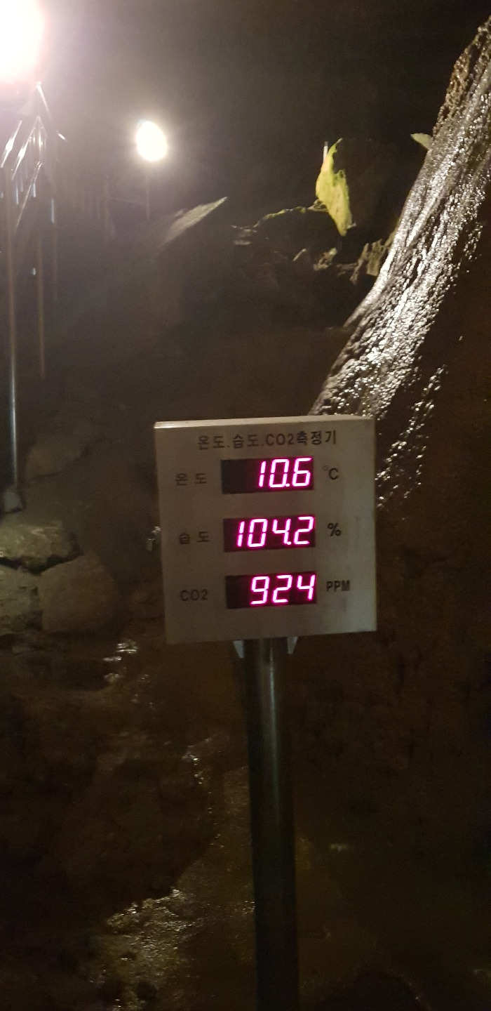 환선굴은 규모 면에서 우리나라의 석회동굴을 대표한다. 동굴 내부를 흐르는 하천의 규모가 크다 보니 그 영향을 받아 굴의 내부가 다른 석회동굴에 비해 크다. 또한, 습도가 매우 높고 이산화탄소 농도가 높아 아래의 사진들처럼 다양한 형태의 스펠레오뎀이 어두운 동굴 속을 다채롭게 장식한다. 아래 사진의 계측기를 보면 동굴 내부의 이산화탄소 농도는 924 PPM, 습도는 104.2%로 나타나는데, 이는 대기 중 이산화탄소 평균 농도 417.9 PPM(<지구대기감시보고서>, 2019년 기준)에 비해 두 배 이상 높고 대기 중에 수분이 포화상태인 매우 습한 환경을 보여준다.
