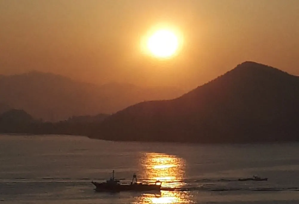 2020년 1월 통영 가족여행, 늦도록 동서들과 이야기를 하다가 새벽을 맞이했다. 먼바다 동쪽에서 빛이 돌더니 어스름한 섬 그림자가 드러났다. 다도해의 많은 섬들은 더이상 자신의 모습을 감추지 못하고 그림자로 존재를 알린다. 해가 수면 위로 솟구치자 바다는 황금빛으로 물들었고, 새벽일을 마친 고깃배와 일을 나가는 고깃배가 실루엣을 그리며 엇갈린다. 배 지나자 금빛 바다는 두 갈래로 갈라지고, 물결은 먼바다로 출렁이다 사라진다.