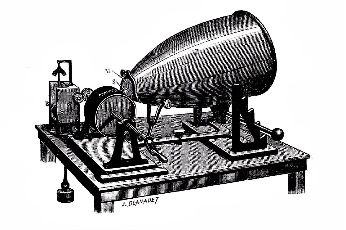 16세기 작가 프랑수아 라블레의 걸작 『가르강튀아와 팡타그뤼엘』 일부입니다. 추위에 얼어붙은 언어가 녹으면 공기에 소리가 퍼진다는 근사한 전설을 이야기하지요. 녹음 기술이 발명되기 전, 사람들은 소리를 이런 무한한 상상력에 담았습니다. 그리고 때로는 엉뚱한 아이디어도 냈지요. 이를테면 망원경을 발명한 이탈리아의 잠바티스타 델라 포르타는 한쪽이 막힌 금속관에 말을 하고 재빨리 마개를 닫으면 한동안 소리를 보존할 수 있다고 믿었으니까요. 소리를 담는다는 라블레의 상상이 현실에 근접하기까지는 약 350년이 걸렸습니다. 에두아르 레옹 스코트 Edouard-Leon Scott가 1855년에 발명한 포노토그래프(Phonoautograph)를 아마 그 시초로 꼽을 수 있을 겁니다.