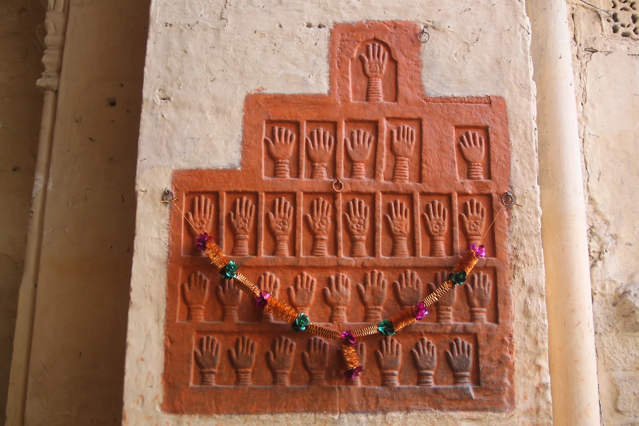 사띠가 여성의 인권 무시과 무고한 여성들이 죽어가기 딱 좋은(?) 변명거리가된다. 메헤랑가르성에 있는 저 손바닥들은 한 왕조의마하라자가 거느린 부인들이었다고 한다. 그래서 31개의 사띠는 31명의 부인을 의미하는거였다.