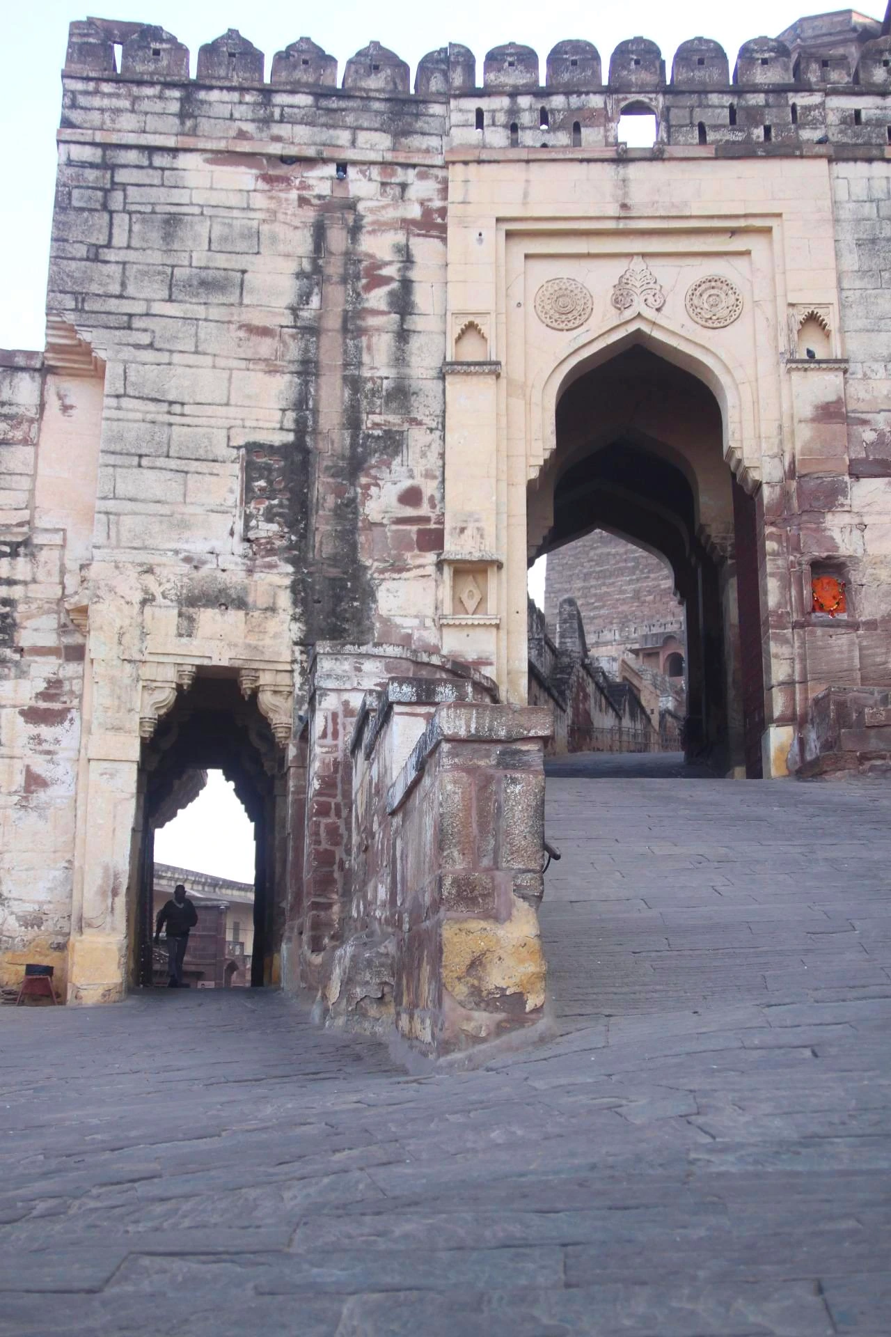 위의 사진도 전쟁 침략을 막기 위한 중요한 장치이다. 좁은 문은 물론이거니와 사진 상 왼쪽으로 들어와 오른쪽으로 올라가야 메헤랑가르성을 올라가는 길이다. 이렇게 급경사를 만들어 놓은 이유는, 대부분의 성문을 부실때는 전쟁시에 코끼리를 동원한다. 굵고 단단한 문을 부실때는 코끼리에 가속력을 더해 머리로 문을 부실 수 있다. 이러한 급경사는 그런 코끼리의 가속력을 만들 수 없도록 만들도록 급경사를 만들어놨다. 치밀하다.