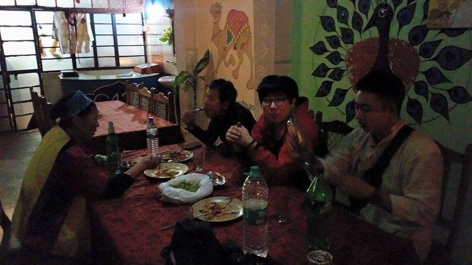 사실 이 레스토랑은 점심에도 왔던 곳이다. 다만 정훈이형과 철인이랑 같이와서 다양한 메뉴를 시키면서 서로의 것을 맛을 보는 이 재미는 또 무엇인가? 인도여행 중에는 경험하지 못한 것이었다. 점심에 혼자 있을 때보다 셋이 있을 때는 확실히 달랐다. 혼자오게 되면 뭘 먹어야 될지 모르겠고, 아는 정보가 없기 때문에 적당한 가격에 메뉴판에 속으로 찍어내면 뭔지 모른체 그것을 먹게 된다.