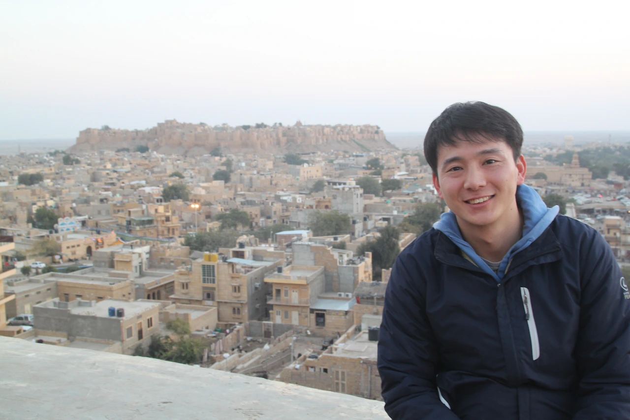 자이살메르의 수리야와 작별인사를 나누고 있었을 때, 2명의 한국인들을 만났다. 중요한 시험공부를 마치고 인도여행길에 나선 정훈이형과 현재 휴가 중인 철인이라는 동생이었다. 그 두 분 역시 자이살메르에서 만났다고 한다. 이 분들과 서로에 대한 대화의 물꼬를 트고, 점점 친해지기도 했다. 심지어 내일 출발하는 자기호텔 사파리도 간다고 하니, 이렇게 반가울 수가 있을까? 나는 그 선셋 포인트에서도 잦은 나의 카메라 요청에 그나마 이쁜 나의 인도 사진을 얻을 수 있었다. 물론 내가 이쁘다라는게 아니라 뒤의 배경이 이쁘다.