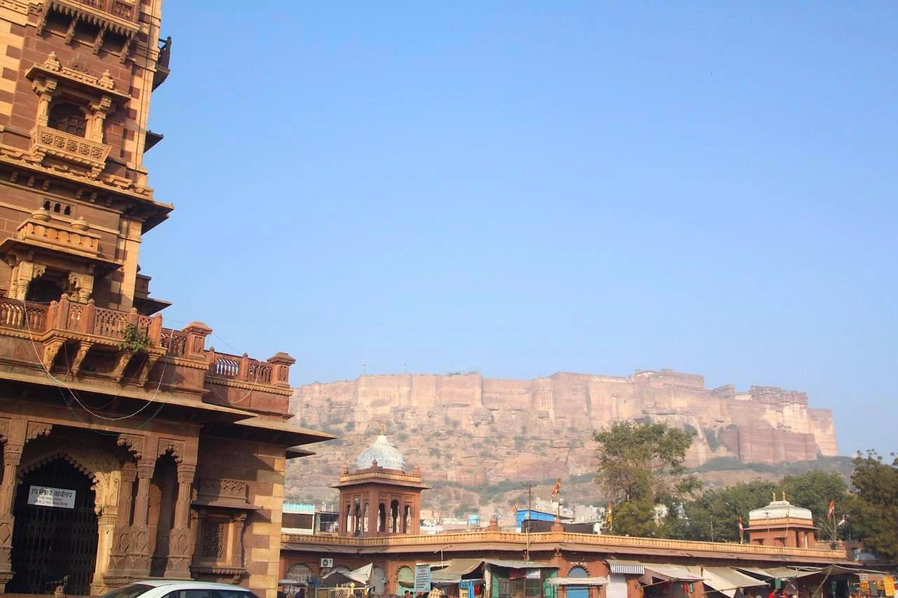 인도의 소의 이야기를 뒤로 하면서 사다르 바자르에 다다를 수있었다. 9시경의 사다르바자르는 아직 장이 열리지도 않아 한적한 자태를 뽐내고 있었다. 시계탑과 시계탑을 뒤로 저 멀리 보이는 메헤랑 가르성까지 상쾌한 하늘과 한데 어울어져 좋은 경치를 뽐내고 있었다.