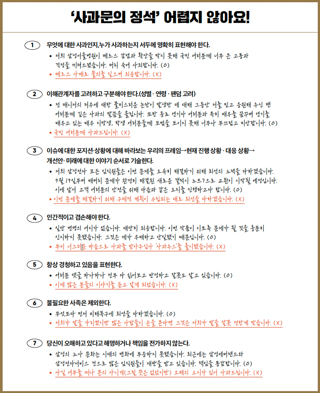 사과 행위 보다 사과하지 않는 일을 하는 것이 위기관리 측면에서 더 중요