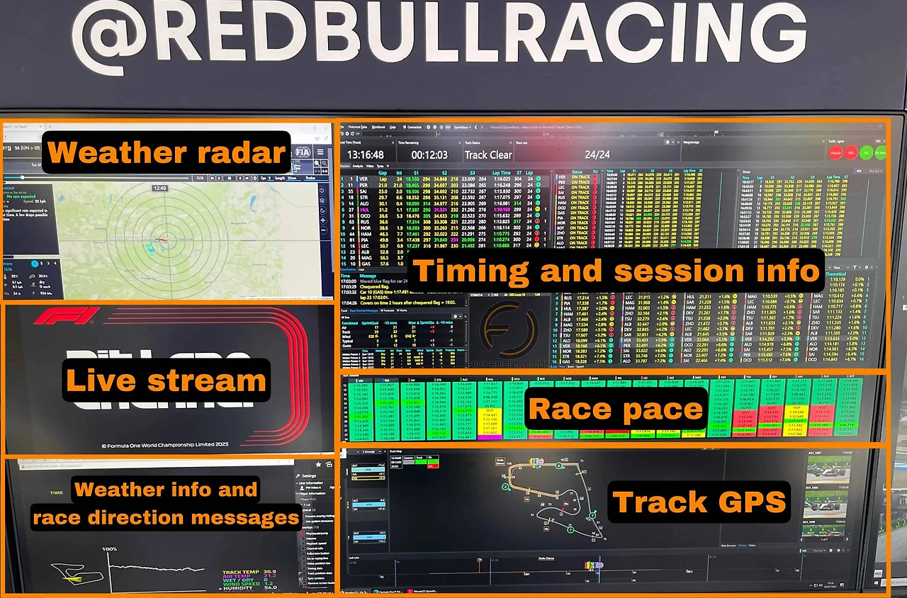 오라클은 세계적인 데이터, 클라우드 컴퓨팅 기업이다. 세계를 움직이는 기업용 데이터의 중추라고 할 수 있다. 오라클은 레드불 레이싱 팀과 함께 오라클의 클라우드 컴퓨팅 플랫폼(Oracle Cloud Infrastructure, OCI)을 통해 수백만 건의 레이스 전략을 시뮬레이션하고 타이어 전략, 피트스톱 타이밍, 기상 변화 대응 전략 등에서 실시간 분석을 한다. 그리고 최근에는 AI 산업에 들어선 오라클이 머신러닝 기반 알고리즘이 레드불의 레이스 전략에 직접 반영되기도 한다. 오라클이 이렇게 스폰서를 참여하는 이유는 그만큼 정교하고 실시간으로 정확한 데이터를 측정하는 클라우드 기반 기술력을 가장 잘 보여줄 수 있는 플랫폼이 바로 F1이기 때문이다.