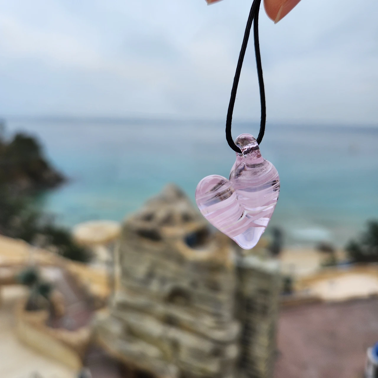 목걸이를 만지며 생각해 보니, 어쩌면 사랑은 핑크색 하트 유리 같은 게 아닐까 하는 생각이 들어요.