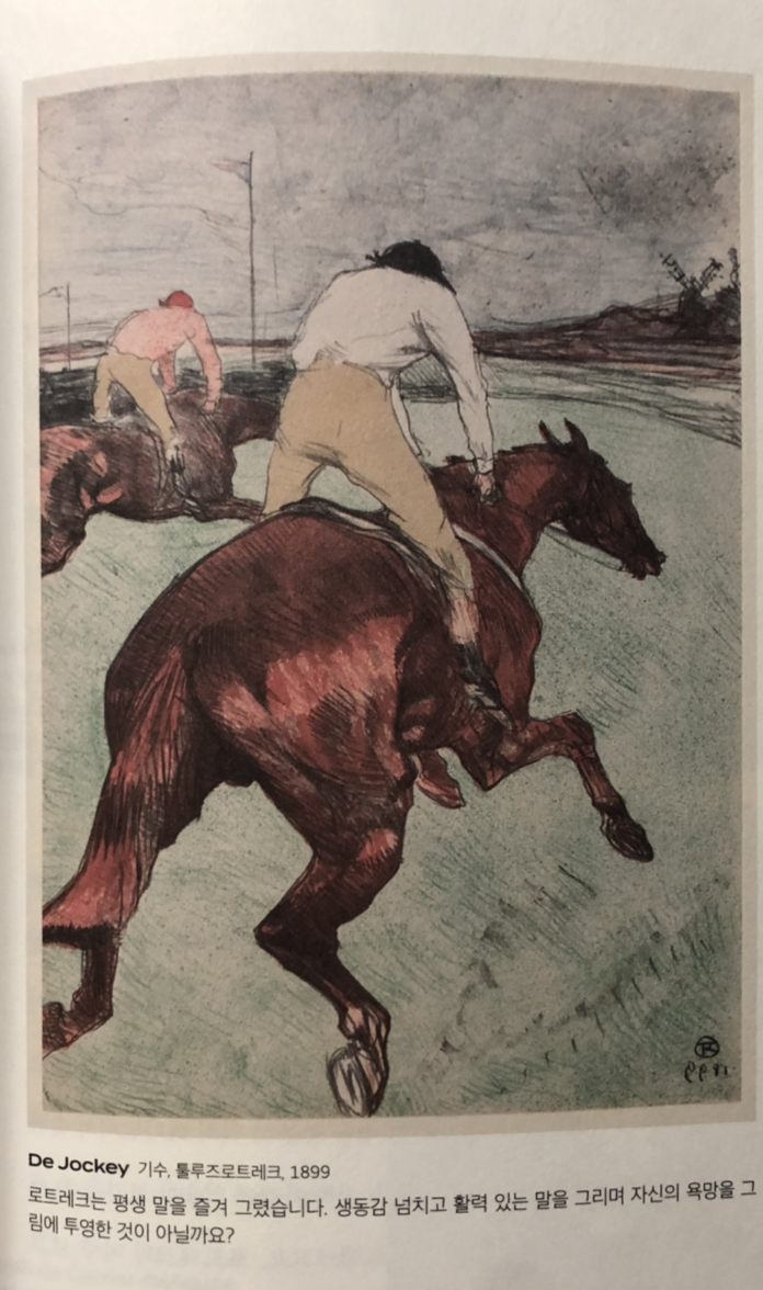 작은 별 하나가 물랭루주에서 뜨고 졌다. 뚤루즈 로트렉. 작은 키 콤플렉스로 인생의 많은 시간을 보낸 나 자신의 열등감이 그에게 투영되어서였을까. 그에 대한 이야기를 책에서 접할 때마다 그의 페이지는 접어두고 멀리하고만 싶었다. 그러던 내가 그를 깊이 만난 것은 2020년 예술의 전당 <물랭루주의 작은 거인 : 뚤루즈 로트렉 전>에서였다. 전시회를 보러 가고 싶다는 첫째 딸의 소원을 들어주고자 방문한 그곳. 우연히 접한 전시였으나 후에 나머지 아이들도 설득하여 다시 한번 방문했을 정도로 전시 관람 후 감동은 컸다. 그 후로도 오랫동안 로트렉의 삶과 그림이 나의 뇌리에서 떠나지 않았다.