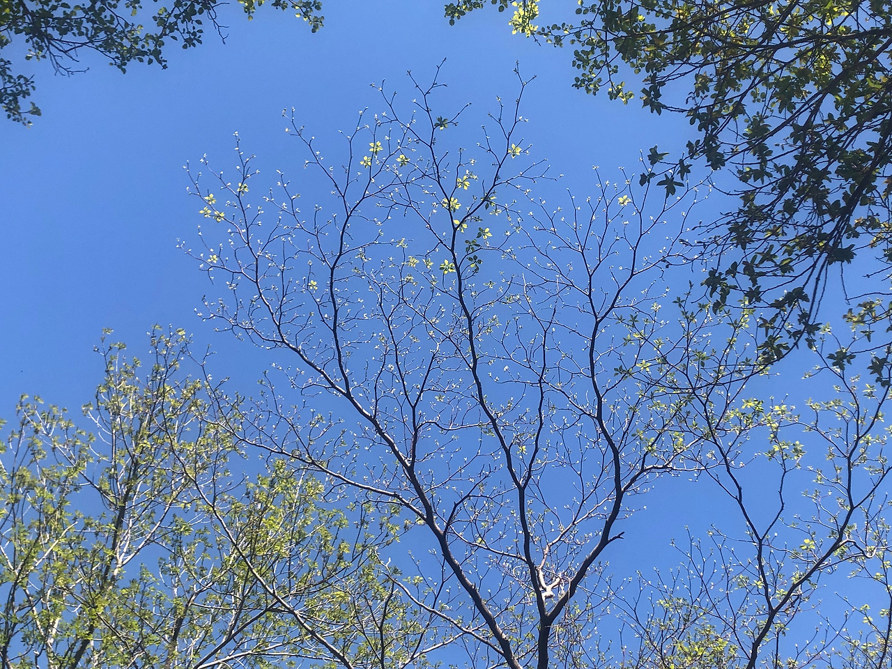 딸내미가 자신이 쓰려고 긴 나뭇가지를 들고 땅을 짚으며 걷다가 예전에 그랬듯 나를 보더니 지팡이를 내게 양보했다. 정말 고마웠다. 아이들은 눈앞에서 어느새 사라졌다. 체력이 저조해진 나와 호흡을 맞추기 위해 남은 남편이 아이들 뒤에서 나와 함께 발을 맞추며 천천히 걸었다. 급할 것이 없으니 새로 난 나뭇잎들에 자연스레 눈이 갔다. 바람에 흔들리는 나뭇가지들에서 난 나뭇잎은 부서지는 햇빛을 온몸으로 반사하며 반짝거렸다. 새소리도 듣고 나무 냄새도 맡고, 흐르는 개울 소리도 들으며 산을 올랐다.
