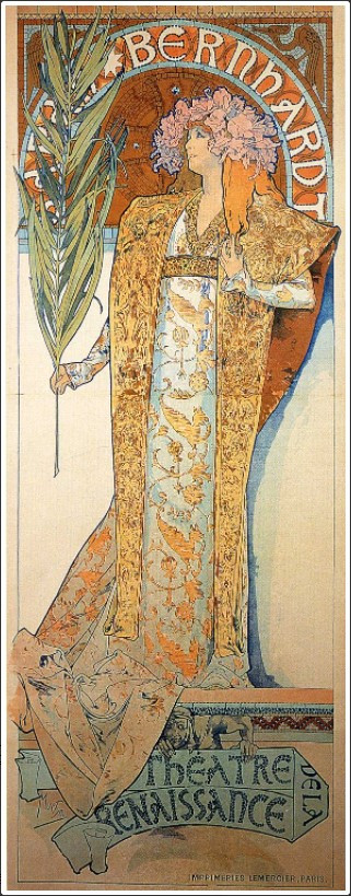 무하와 사라 베르나르와의 만남은 오랜 시간 자신의 자리를 지키며 성실함으로 인생을 살아가던 무하를 한 순간 스타의 자리로 끌어올린다. 사라는 당시 유명 배우 겸 감독이었다. 그녀는 자신이 새로 출연하게 될 <지스몽다>라는 연극에 쓸 포스터가 마음에 들지 않아 새 포스터 시안을 받아오라고 매니저를 르메르시에로 보낸다.