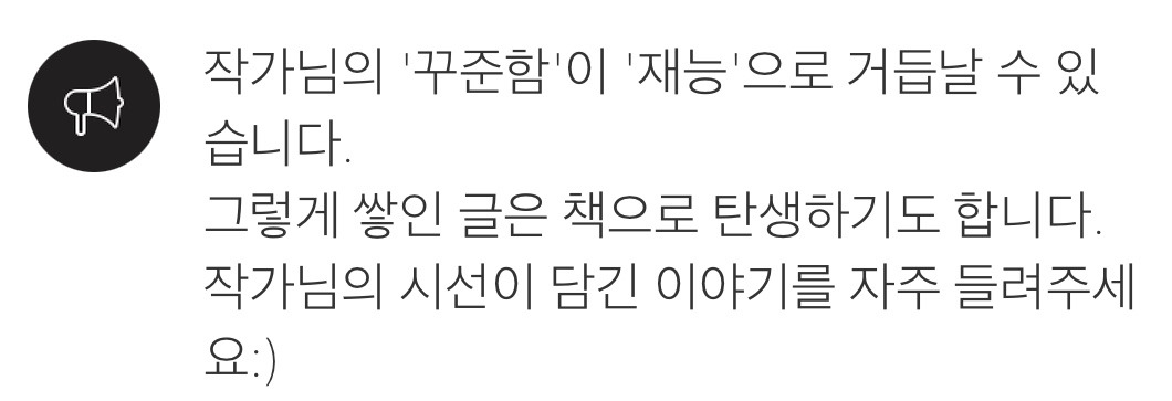 정신을 차리고 다시 알림글을 보니 내가 집중해야 할 단어는 '재능'이나 '책 내기'가 아니었다. 이것은 전적으로 나의 얕은 문해력으로 인한 비약의 결과였다. 꾸준함으로 얻게 되는 콩고물에 마음 쏠림이 아닌 "자주 이야기를 써달라"는 이야기로 들어야 했다.