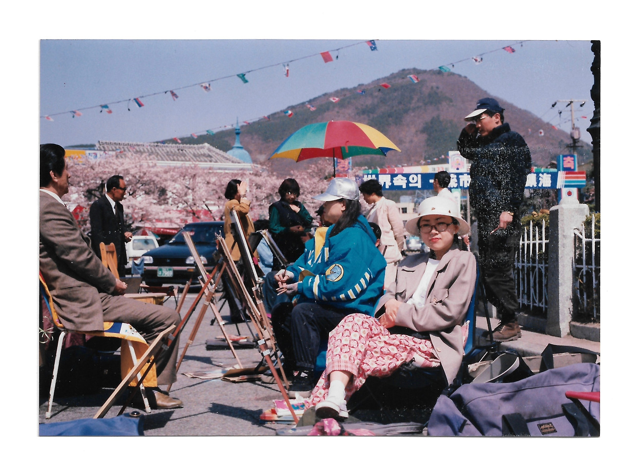 결혼하던 해, 대구에 우방랜드가 생겼다. 대구 시내와 수성 못, 동촌유원지로 분산되었던 주말 인파가 새로 생긴 우방랜드로 모조리 몰려버리는 통에 시내는 한산해졌다. 남편은 한 달에 80만 원을 벌지 못했다. 하는 수 없이 동료 화가들과 함께 축제장이나 사람들이 모이는 곳을 찾아다녀야 했다. 가까운 시내 고정적인 자리에서 찾아오는 사람들을 상대로 돈을 버는 게 훨씬 편했겠지만, 여기저기 찾아다니는 것도 남편에게 고달픔보다는 설레는 마음이 조금 더 컸던 것 같다. 어쨌든 꽃이 피거나 풍경이 아름답거나 분위기가 좋은 곳을 찾아가는 거였으니까. 돈 벌면서 다니는 여행. 물론 돈을 못 벌 때는 풀이 죽기도 했지만.