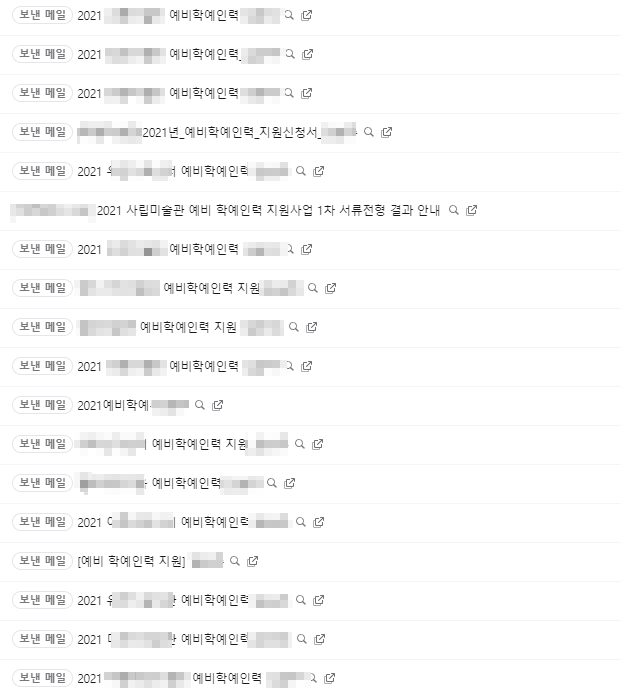 나는 사립미술관에서 운영하는 '예비학예인력 지원사업'에 참여하는 미술관에 지원하였다. 해당 사업에 참여하는 미술관에서 각각 인력채용 공고를 올리므로 각 미술관 홈페이지의 공고를 확인하면 된다. 매년 1~2월에 한꺼번에 공고가 올라오며 제출서류 양식이 통일되어 있어 여러 곳에 지원하는 것도 어렵지 않다. 하지만 지원이 쉬운 만큼 경쟁률이 꽤 있는 편이기도 하다. 22곳에 지원해서 3곳에서 서류합격 연락을 받았고 최종적으로 1곳의 면접에 참석하여 합격하였다.