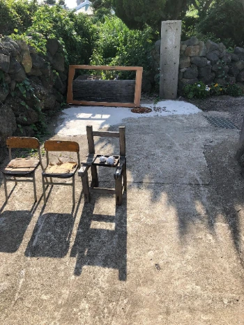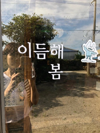 그렇게 무사히 서울을 떠나 제주에 도착했습니다. 이번 여행은 아무 계획 없이 혼자 돌아다니는 것이 저의 계획이었기 때문에 첫날 묵었던 숙소와 가장 가까운 독립 책방을 검색해서 가보기로 했지요. 그렇게 도착한 첫 번째 서점은 바로~ 예쁜 의자들이 저를 반겨줬던 '이듬해 봄' 책방이었어요. 언제 태풍이 왔냐는 듯 쨍쨍한 날씨가 사진에서도 느껴지시나요? 저는 왜 고민을 했던 걸까요.... 하하하;;