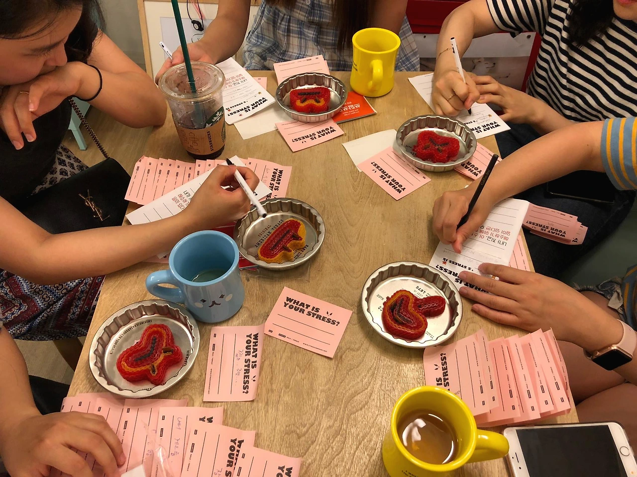 자신의 분노를 가득 담아서 분노캔들을 만들고 태우기 전에, 자신의 스트레스를 스트레스 포스트잇에 전부 적은 후, 내가 해결할 수 있는 스트레스와 해결할 수 없는 스트레스로 구분하는 시간을 갖는데요. 머릿속에서만 맴돌던 고민들을 시각화하는 과정을 통해서 죽을 것 같이 힘들었던 일들이 사실은 그렇게 심각한 것이 아니었구나라는 사실을 깨닫게 되는 등 자신에 대해서 미처 알지 못했던 새로운 것들을 발견하게 됩니다.