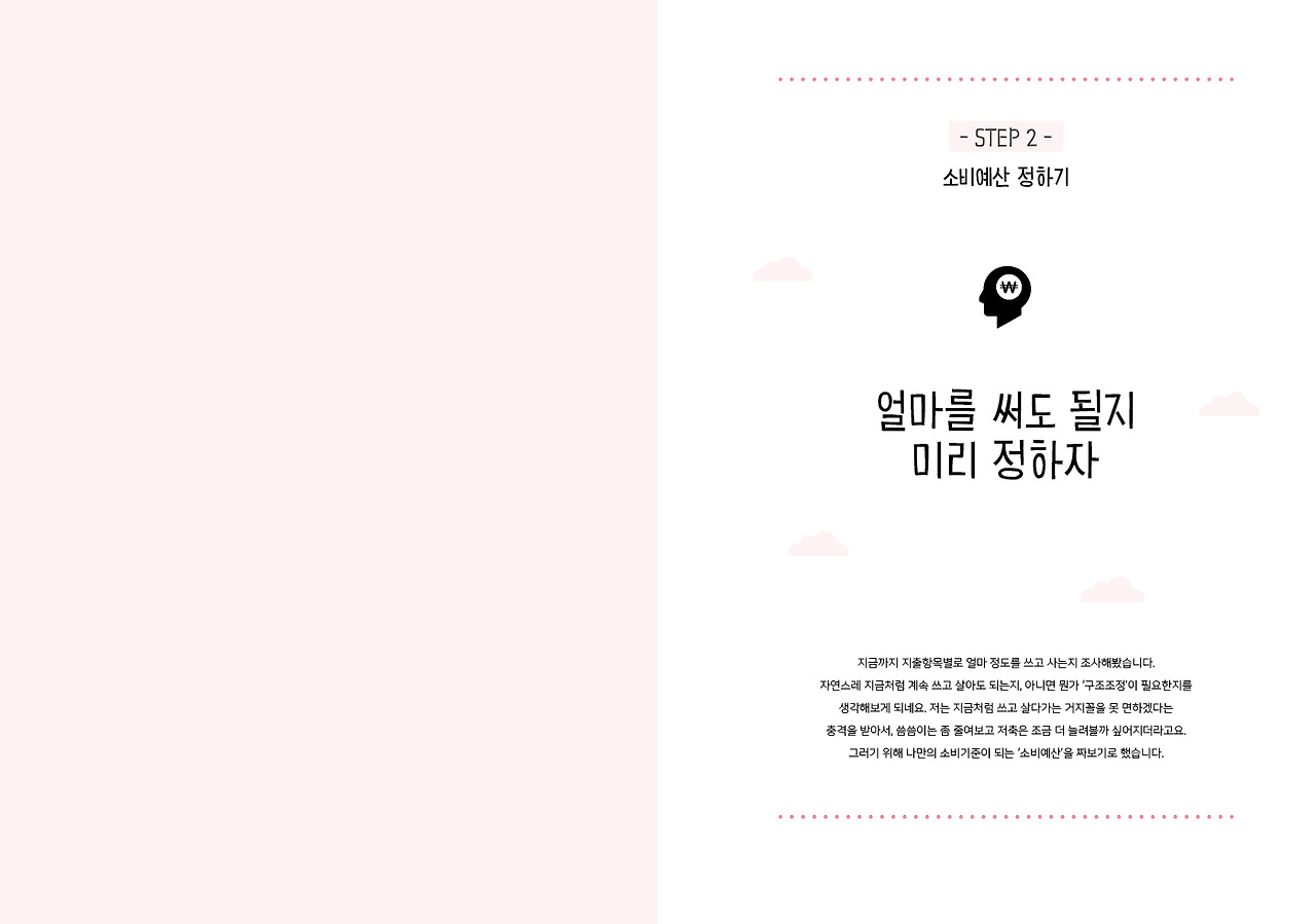 감정 다이어리 북을 출간하고, 일주일, 100일, 분노 극복 다이어리가 나온 뒤에 다음엔 어떤 다이어리를 만들까 하고 고민하고 있을 때, 돈이야 말로 감정과 가장 밀접한 것이 아닌가 하는 생각이 들었습니다. 그렇게 자연스럽게 서로의 필요성을 느끼고 있던 푸른 살림 대표님과 저는 함께 협업을 해보자고 1년 전부터 이야기를 나눴고, 송송책방 김송은 대표님과 진예지 코치까지 넷이서 약 5개월 동안 열심히 준비한 끝에 드디어 현실이 되어 곧 서점에서 볼 수 있게 되었습니다. 그동안 모두 수고 많으셨습니다.