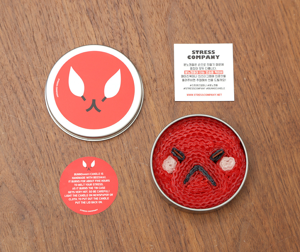 "그 회사에서는 나처럼 고통받는 직장인들을 위해서 스트레스를 풀어주는 상품을 만드는 거야!"라고 생각한 지 5년 뒤 저는 정말로 만들어내었습니다. 뭐를? 스트레스컴퍼니를." 그렇게 시작된 스트레스컴퍼니의 첫 번째 상품이 바로 쌍심지를 켜고 나 대신 화를 내주는 분노 캔들입니다.