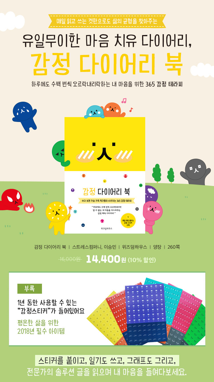 감정 다이어리 북은 전국 서점과 스트레스컴퍼니샵에서 구매 가능합니다.