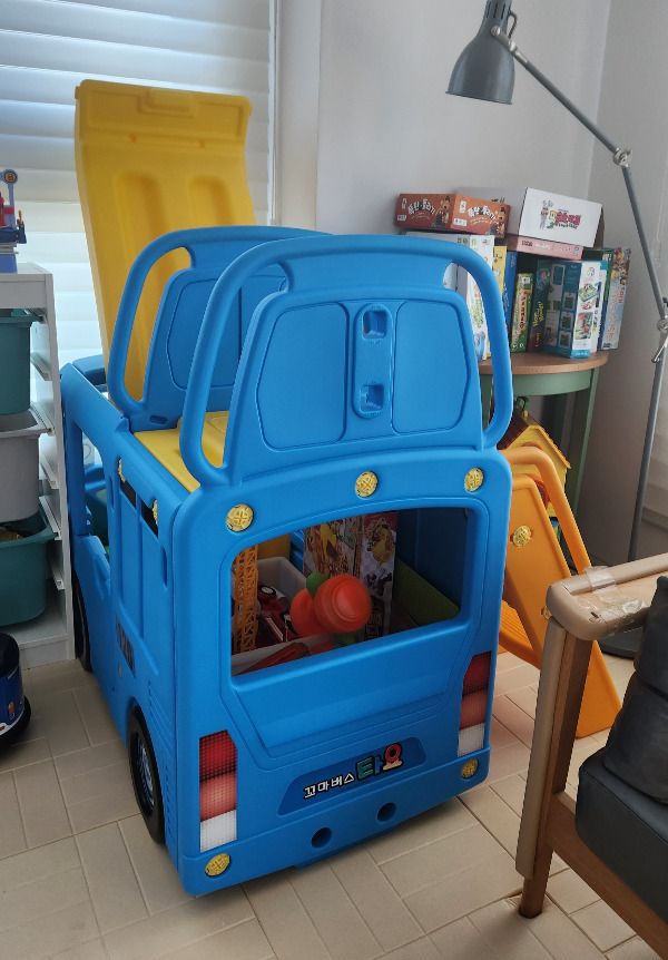 이제는 장난감 창고가 되어버린 타요 미끄럼틀. 집에 아들 친구들이나 조카들이 놀러오면 가끔 부활하긴 한다. 물론 '타요'로써가 아니라 그저 '미끄럼틀'로.