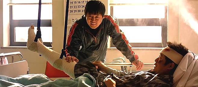 일반적인 형사영화의 포메이션은 다음과 같다. 우선 주인공 형사가 있고 그 옆에서 어깨 역할을 하는 입이 험하고 몸싸움도 잘 하는 부하 형사가 있다. 그 옆에는 대체로 성실하며 얼굴도 좀 잘생긴 신참이 따라붙고 때로는 아주 명석하거나 혹은 푼수같은 여자형사가 합류하기도 한다. 줄곧 ‘주인공 형사’의 자리에 있었던 것 같은 김윤석에게도 ‘주니어’ 시절이 있었다. 영화 <범죄의 재구성>에서 한국은행에서 50억원을 털어간 사기꾼 일당을 쫓는 차반장(천호진 분)의 옆에서 욕을 내뱉고 주먹을 휘두르는 ‘어깨’가 바로 김윤석이었다. 영화 내내 똑같은 츄리닝 바람으로 등장하는 이름도 없이 그냥 이형사라 불리는 조연이지만 아프다며 엄살을 피우는 사기꾼 얼매(이무식 분)을 을러메는 장면에서 김윤석이 던지는 리듬감 있는 대사는 최동훈 감독이 차기작 <타짜>에서 이 배우를 왜 중용했는지 충분히 짐작케 한다.