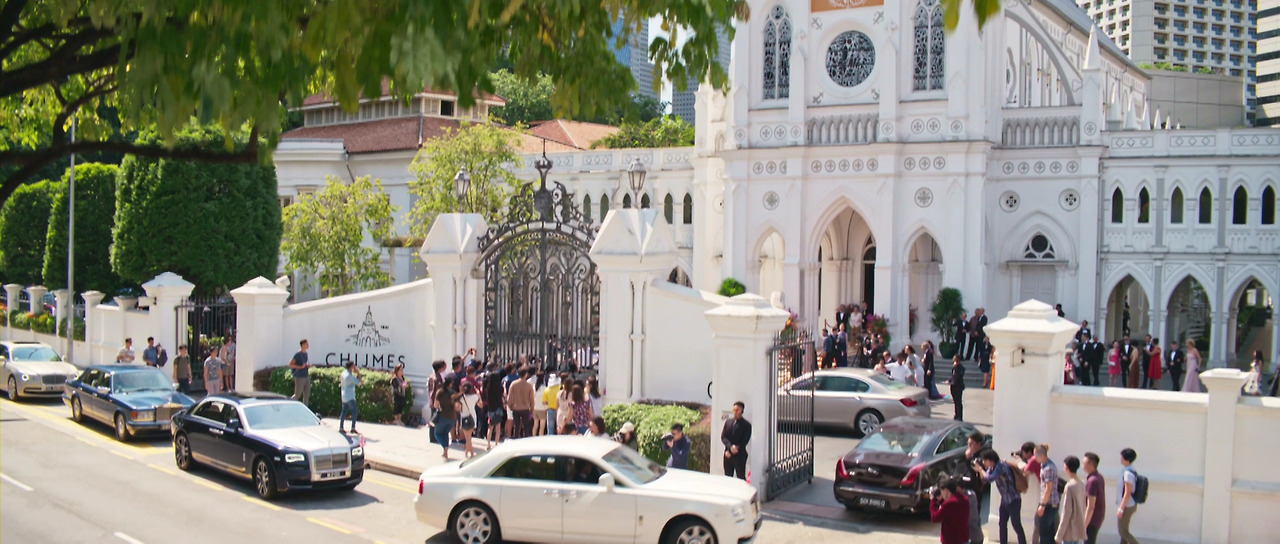 영화에서 꽃과 풀과 나무가 가득한 아름다운 결혼식장으로 등장한 이 곳은 싱가포르 올드시티에 위치한 ‘차임스’라는 이름의 복합공간이다. 19세기 중엽 프랑스 선교사들에 의해 지어져 수도원, 가톨릭 여학교 등으로 사용되어 왔는데 지금은 각국의 음식을 즐길 수 있는 레스토랑과 바 등이 입점해 있다. 영화에 주로 등장한 프렌치 고딕 양식의 예배당 건물은 실제로 많은 커플들이 결혼식을 올리는 공간으로 사용되는데 아쉽게도 평소에는 허가없이 들어가볼 수 없다고 한다.