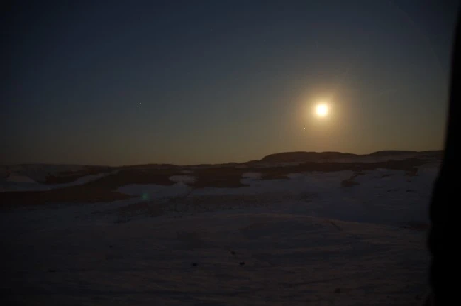 해가 마치 진공청소기에라도 빨려 들어가는 것처럼 급속도로 뚝 떨어지더니 곧 달이 뜨기 시작했다.