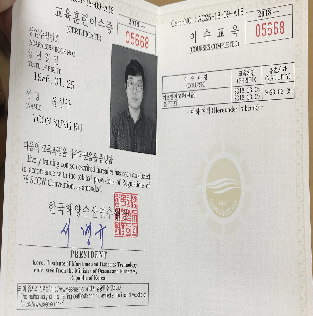 “이수증 받아가세요. 이것 없으면 배 못타십니다.”