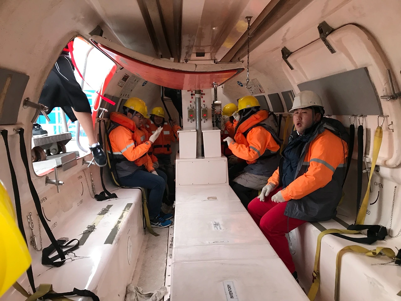 구명정의 좁은 공간이 너무 답답하다.