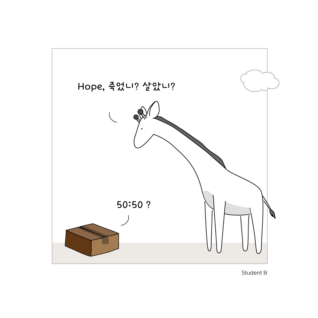 좋은 스승 아래에서 배운다는 것은 공부를 함에 있어서 상당한 행운이다. 왜냐하면, 문제를 보는 관점을 알려주는 조언 한 마디가 그 공부를 계속할 것인지 포기할 것인지를 결정하기도 하기 때문이다. 그렇게 할아버지의 가름침을 받으며 양자역학 공부를 마친 고양이에게, 할아버지 고양이는 세상 진지하게 말했다. "이제까지 넌 세상을 바라볼 수 있는 하나의 관점을 배운 거야. 하지만 그것이 전부는 아니다. 너희 세대는 '희망'을 가지고, 세상을 더 제대로 볼 수 있는 새로운 관점을 찾아내길 바란다." 2)
