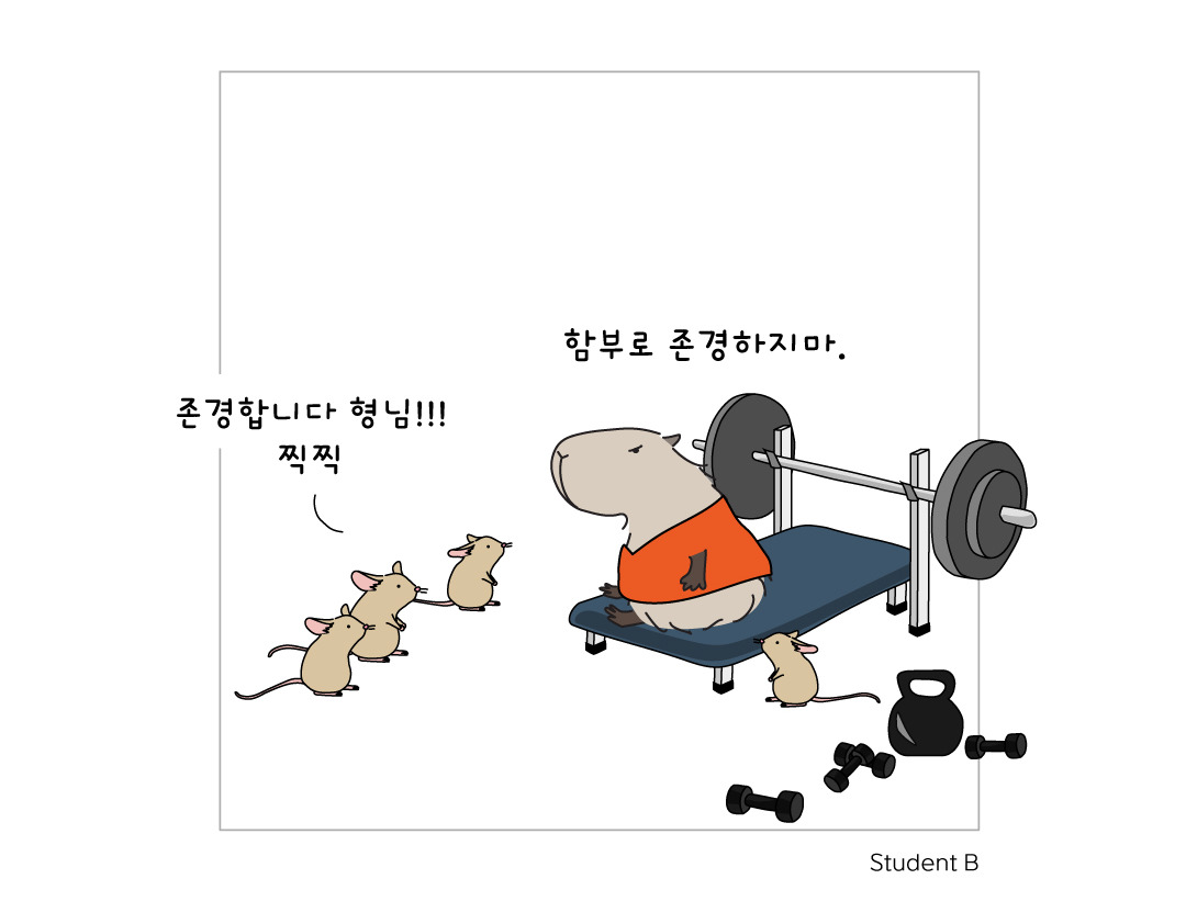 사실 흰 기린이 카피바라를 팀에 합류시킨 것은 공부 실력보다는 그가 혁명의 아이콘으로서 그리고 설치류의 맏형으로서 이 세상의 많은 설치류를 움직일 수 있는 힘이 있기 때문이다. 1) 2)