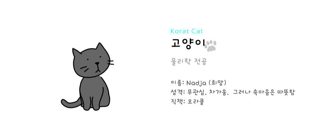 공부에 관한 한, 고양이의 집안 배경은 대단하다. 그의 할아버지는 오래전부터 저명한 인간 과학자들과 교류해 왔으며, 특히 슈뢰딩거라는 물리학자와는 각별한 사이였다고 전해진다. 할아버지 고양이는 말년에 자식 교육에 집중해 고양이를 세계에서 최고 수준의 물리학자로 키워냈다.
