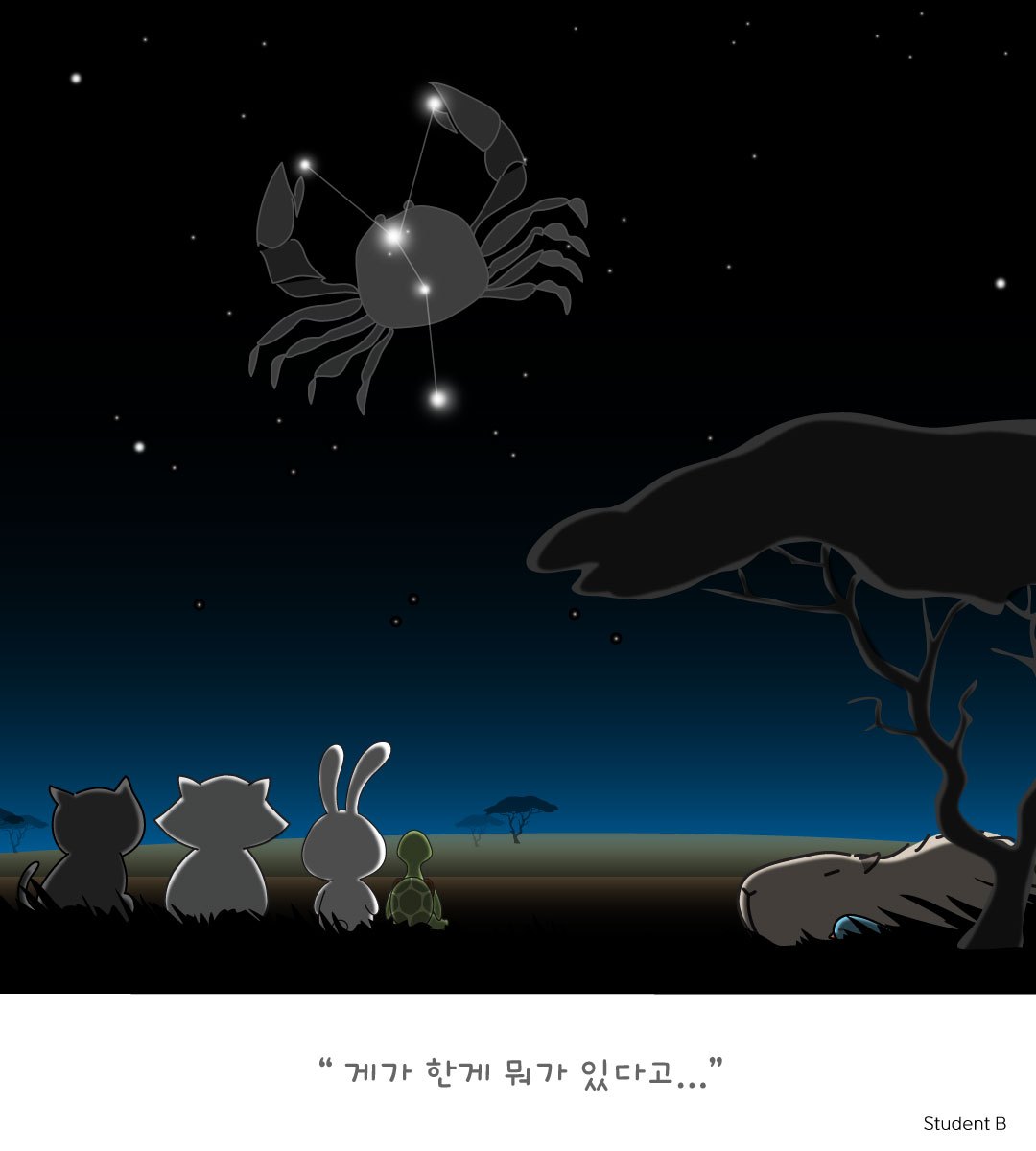게자리 (Cancer) - 너구리나 여우, 코끼리 같은 동물도 별자리가 없는데, 감히 "게"가 하늘의 별이 되었다는 점이 마음에 안 든다.