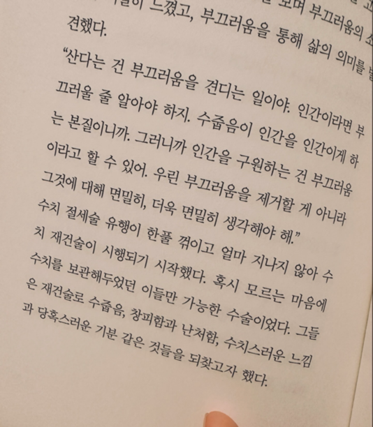 나이가 들면서 목소리도 커지고 머뭇거릴 거 없이 빳빳해질수록 수줍음, 부끄러움, 수치스러움이 어쩐지 더 끔찍하고 귀엽고 애틋해지는 듯합니다. 속으로 ‘아, 내가 왜 그랬지’ 하지만, 안 그런 척 입을 꾹 다물로 혀를 턱 쪽으로 꾹 누르며 부끄러움을 감내하던 그 느낌이 어쩐지 소중하게 느껴지죠. 누군가 실수나 잘못을 하고 나서 부끄러워하기만 하면 그 실수가 뭐든 용서가 됩니다. 사람이 살아갈수록 마음이 너그러워지는 건 그 괴롭고 끔찍하고 아찔한 감정을 알기 때문일 겁니다.