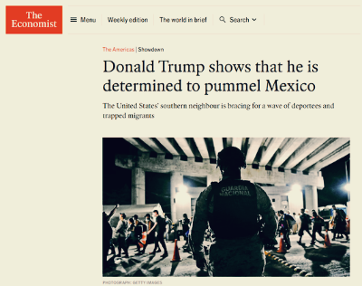 영국 주간지 이코노미스트가 “트럼프 대통령이 멕시코를 첫 공격 대상으로 삼았다”라면서 그 의미를 분석했습니다.