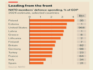 이런 저런 돈 쓰임 때문에 폴란드는 2025년 국방비를 GDP의 4.7%까지 느릴 계획인데, 아마 트럼프 대통령이 요구하는 GDP의 5%에 거의 다가갈 유일한 국가가 될 전망입니다.