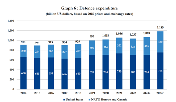 바이든 행정부 4년 동안 나름대로 국방비 지출을 늘리기 위해 애를 써왔지만, 트럼프 대통령의 눈높이에는 한참 못미칩니다.