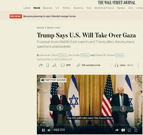 트럼프 대통령이, 미국을 찾은 네타냐후 이스라엘 총리와 함께한 기자회견에서 "미국이 가자 Gaza 지역을 점령(장악)해서 가자를 중동의 리비에라(Riviera of the Middle East)로 만들겠다"라고 발표했습니다.