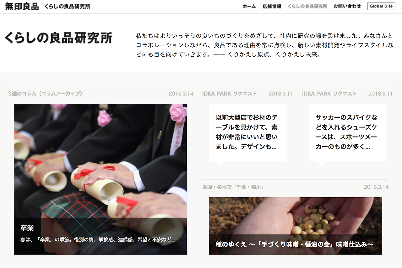 칼럼이 올라오는 생활의 양품연구소(くらしの良品研究所)는 무인양품(無印良品)에서 운영하는 사이트 중 하나예요.