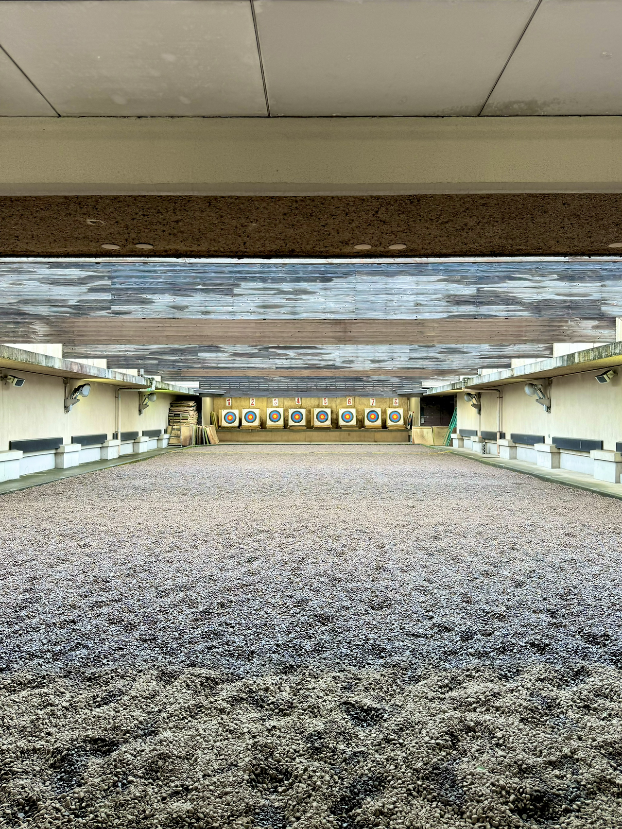 옥상에는 자갈이 깔린 양궁장이 있었다.