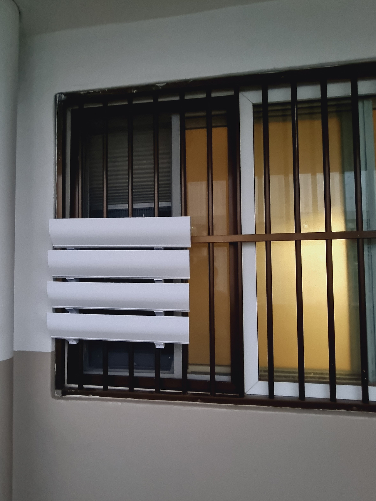복도식 아파트라 에어컨을 설치할 수 있는 곳은 복도 쪽 창문뿐이었는데, 지나다니는 사람들이 불편할 듯하여 따로 에어컨 바람막이를 사서 케이블 타이로 고정했다.
