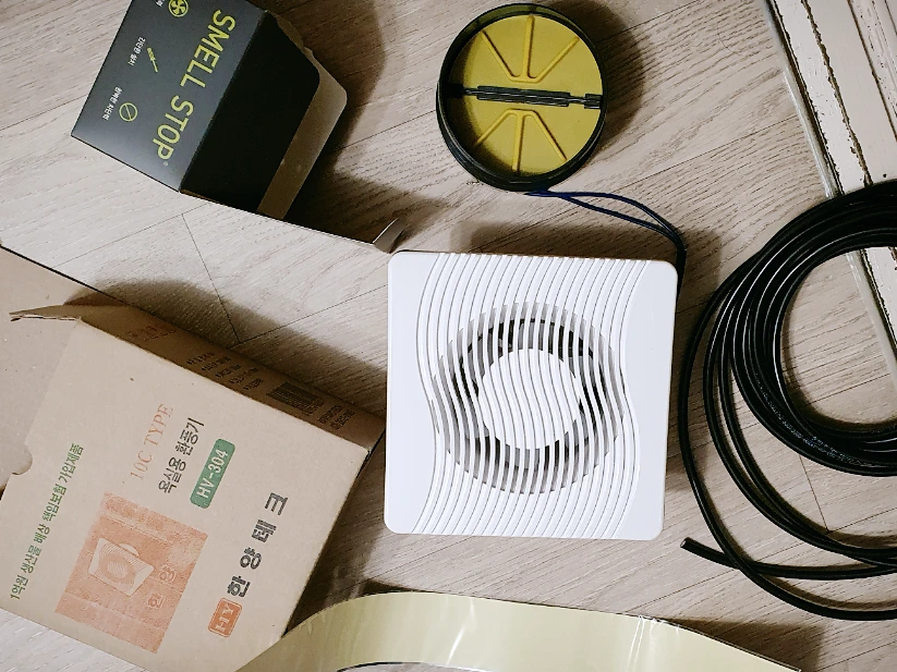 이전에 화장실 환풍구 틈새를 메우고 나서 집안으로 퍼지는 냄새는 없어졌지만, 화장실에 들어가면 여전히 냄새가 올라왔다. 이 불쾌함을 없애야 했다. 환풍구에 조치를 취하면 확실히 나아지는 것으로 봐서는 분명 해결 가능한 문제였다. 그냥 다른 집과 공기를 공유하는 구멍만 하나 뚫려있는 화장실에 '배기'의 개념을 만들어야 했다. 결국, 고민 끝에 환풍기를 설치하기로 했다.
