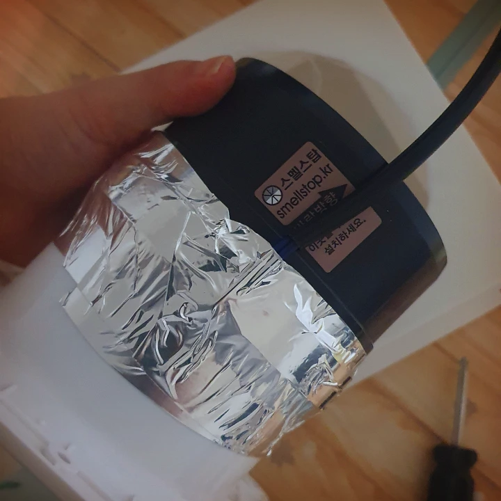 연약하다. 오래 켜 두면 괜찮지만, 들어오는 냄새 입자를 100% 차단하진 못한다. 아쉽긴 하지만, 그래도 효과는 있다. 사실 좀 더 크고 출력이 센 환풍기를 설치하고 싶었는데, 3D 프린터가 작아서 어댑터를 더 크게 제작하기는 힘들었다. (사실 날개가 저렇게 작을 때부터 불안하긴 했다)