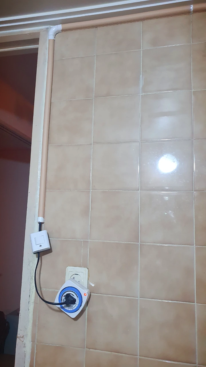 이제 전기만 끌어오면 됐다. 환풍구와 가까운 조명에서 전기를 따와서 불을 켤 때마다 자동으로 환풍기가 켜지도록 할까 했는데, 이러면 추후 제거하기가 몹시 귀찮고 환풍기만 켜놓는 경우도 많아서 콘센트에서 전기를 끌어와서 스위치를 따로 뒀다.