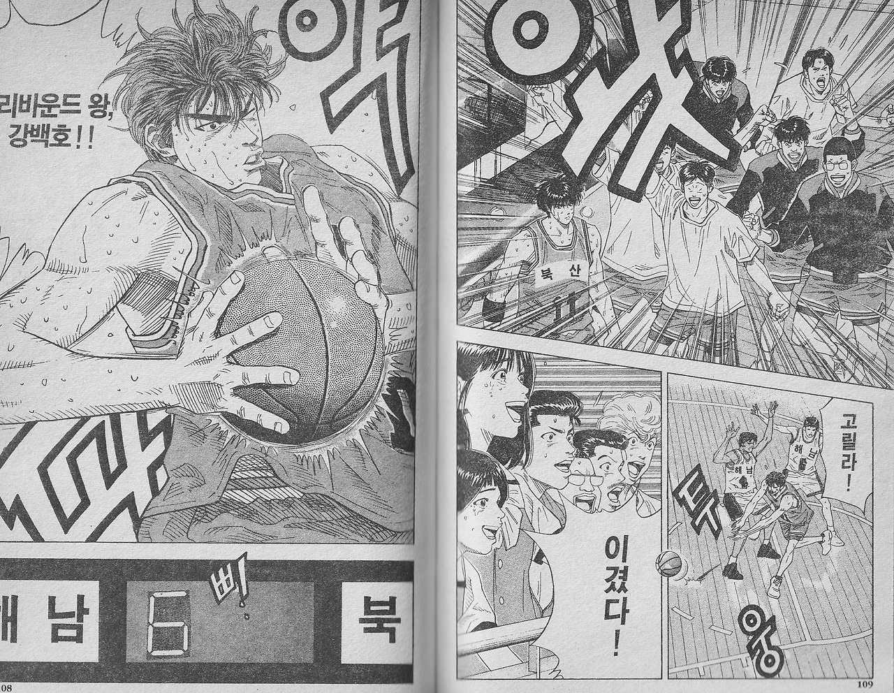 9초를 남기고 정대만의 3점 슛이 림을 맞고 골대를 벗어났고 이정환이 그 골을 잡으려는 순간...