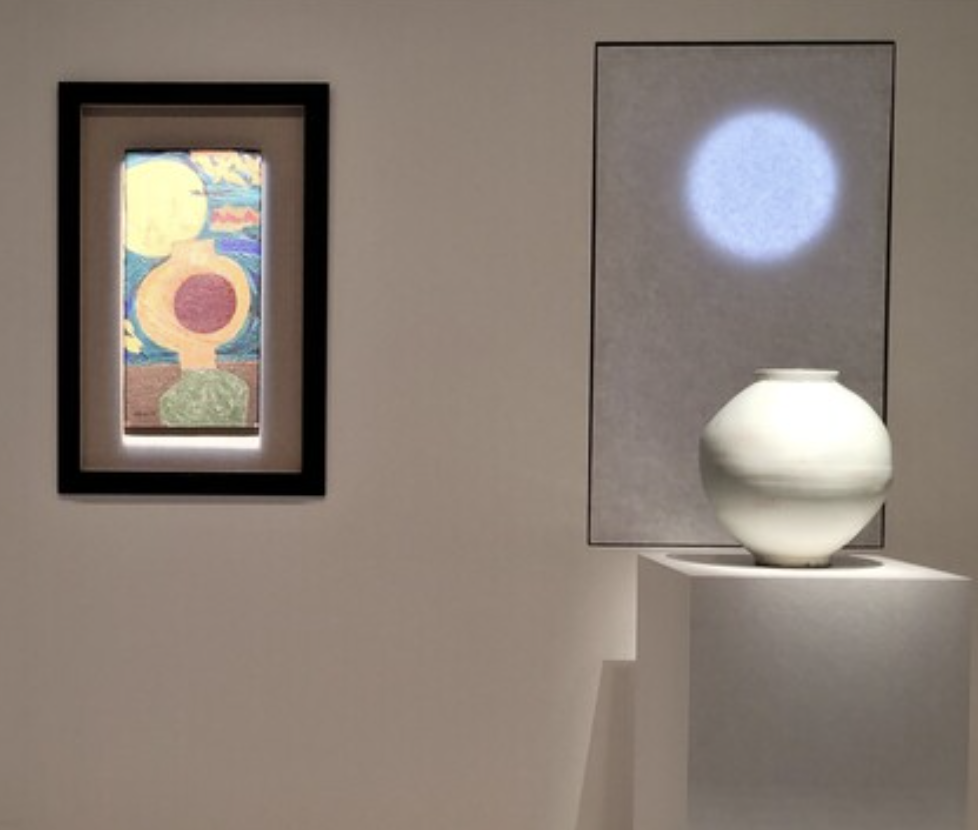 뒤 살며시 열린 문짝을 병풍 삼아 마당에 덩그러니 놓인 커다란 백자 항아리를 본 적이 있다. 이파리 없이 가는 매화 가지를 함께 놓기도 한다. 김환기 화백은 그 맑은 풍만함의 카테고리에 이름을 지어, ‘달항아리’라 꽃 붙여주었다.