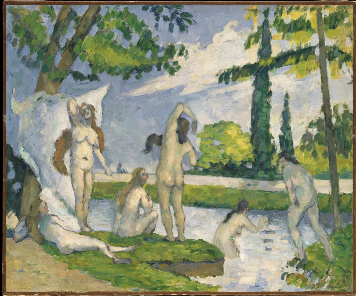 편하게 둘러보고 있는데 사과 정물화로 유명한 폴 세잔의 인물-풍경화 하나가 인상 깊게 다가왔다. 폴 세잔의 다른 작품인 <목욕하는 사람들>과 유사한 그림이었다. 사과가 아니라 사람이네, 하고 가볍게 보고 넘기려던 그림의 모델에서 문득, 파블로 피카소의 <아비뇽의 여인들(Les Demoiselle d’Avignon)>이 떠올랐다. 그러면서 순간 세잔이 입체파의 효시로 평가받는다는 지식이, 머리가 아닌 가슴으로 들어왔다.